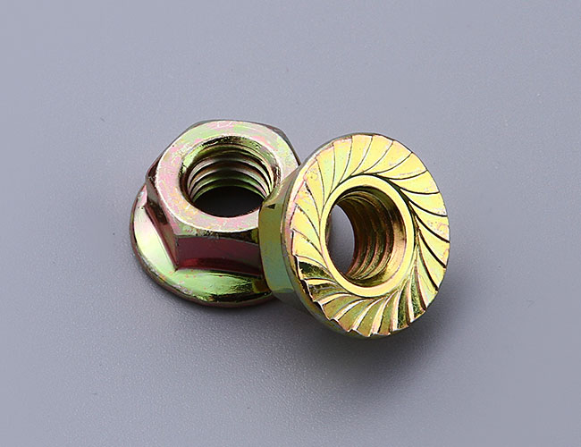 花齒防滑防松螺母的原理:在組裝時(shí),內(nèi)齒的側(cè)面彼此相對(duì),而壓花的外表面的接觸面則咬入兩端。表面之間的相對(duì)運(yùn)動(dòng)產(chǎn)生提升張力,實(shí)現(xiàn)鎖定效果。